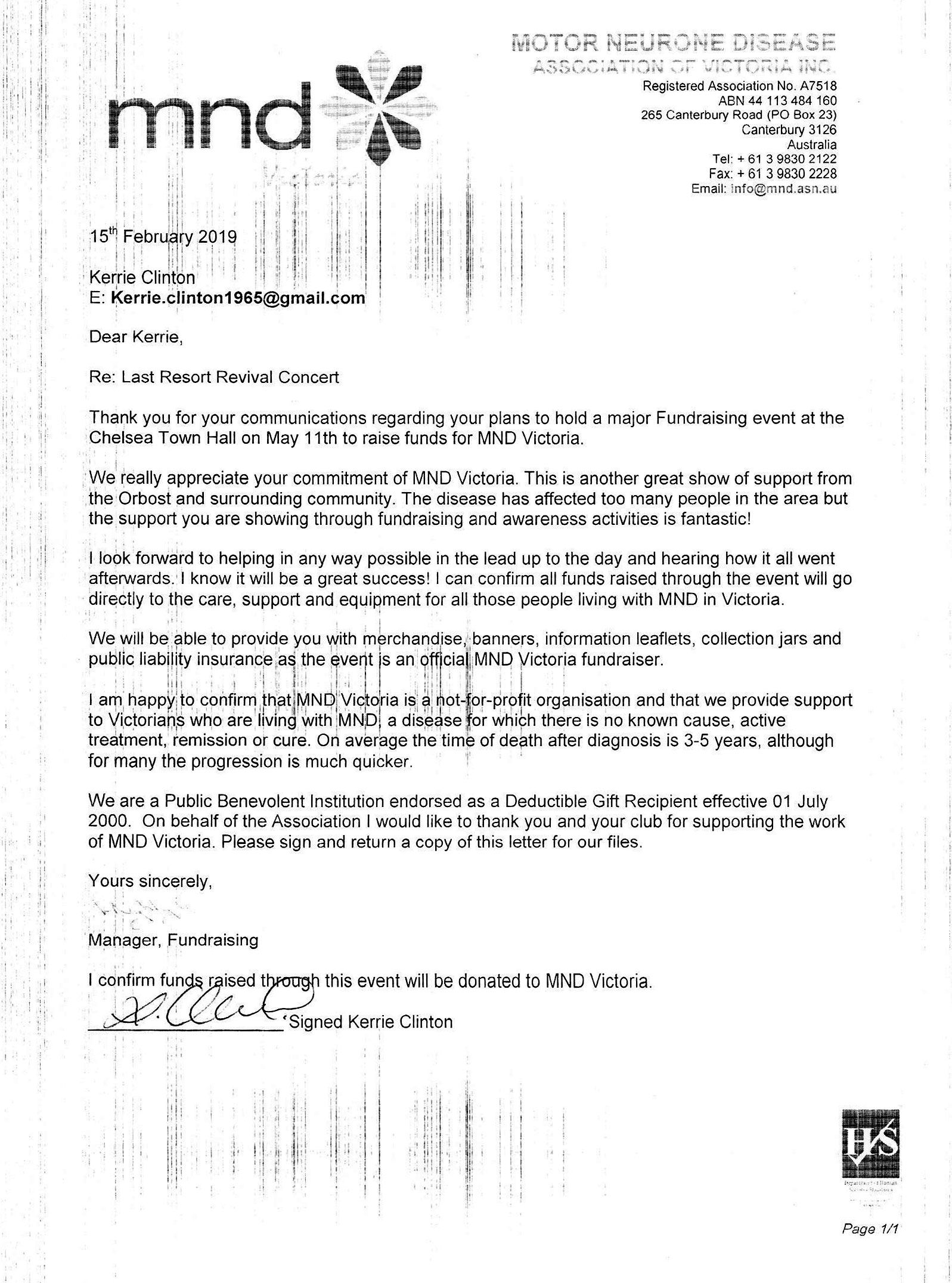 All proceeds from ticket sales ($35) and donations will go directly to MND Victoria to buy much-needed equipment to help people suffering from this horrible disease.